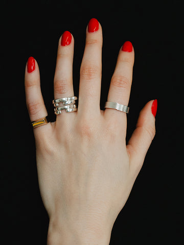 Price: $168A fresh perspective on black. The brand's signature wave pattern, featuring contrast bell cuffs. Easy wear, a lot of impact.