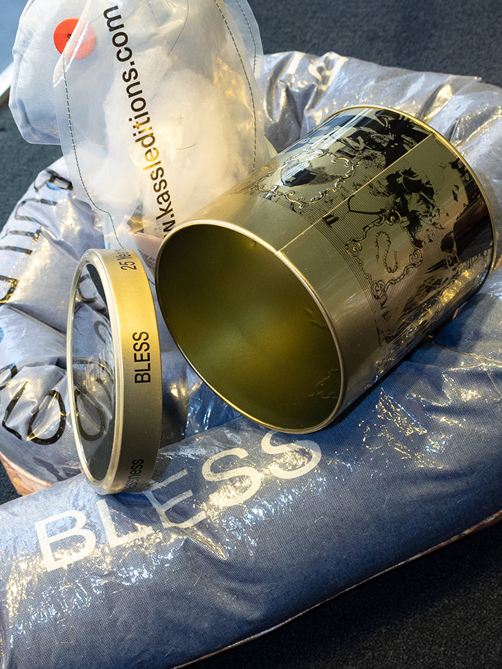 The No. 77 collection is about workers, of all kinds and stripes. They've produced this decorative tribute tin, in acknowledgment of the individuals that work within their own studio, and in honor of the brands 25th year. The object is embossed with a few of their signature objects and designs, and notated on the lid with a few of their more memorable phrases describing their collections: "10 Years of Themelessness" "Always Stress with BLESS". Perfect for your favorite BLESSHead.