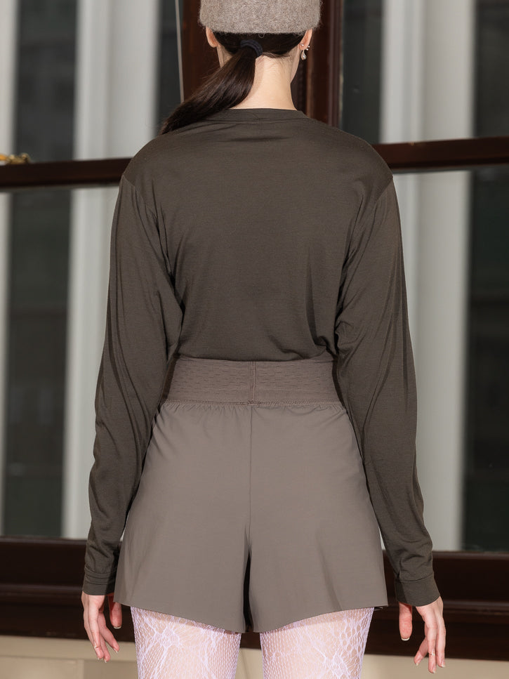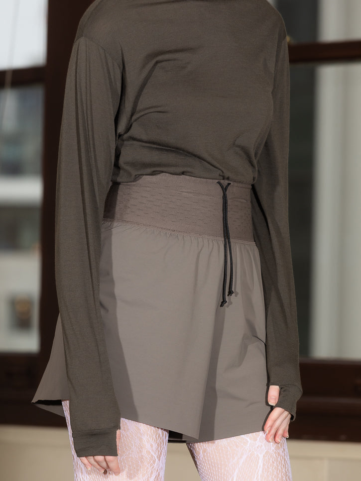 Shorts everyone wants. Nylon shorts made in Japan with Italian knit waistband that houses 4-6 utility pockets for things like keys and AirPods. Drawstring at the waistband. Look for these to be ripped off by everyone. Unisex.