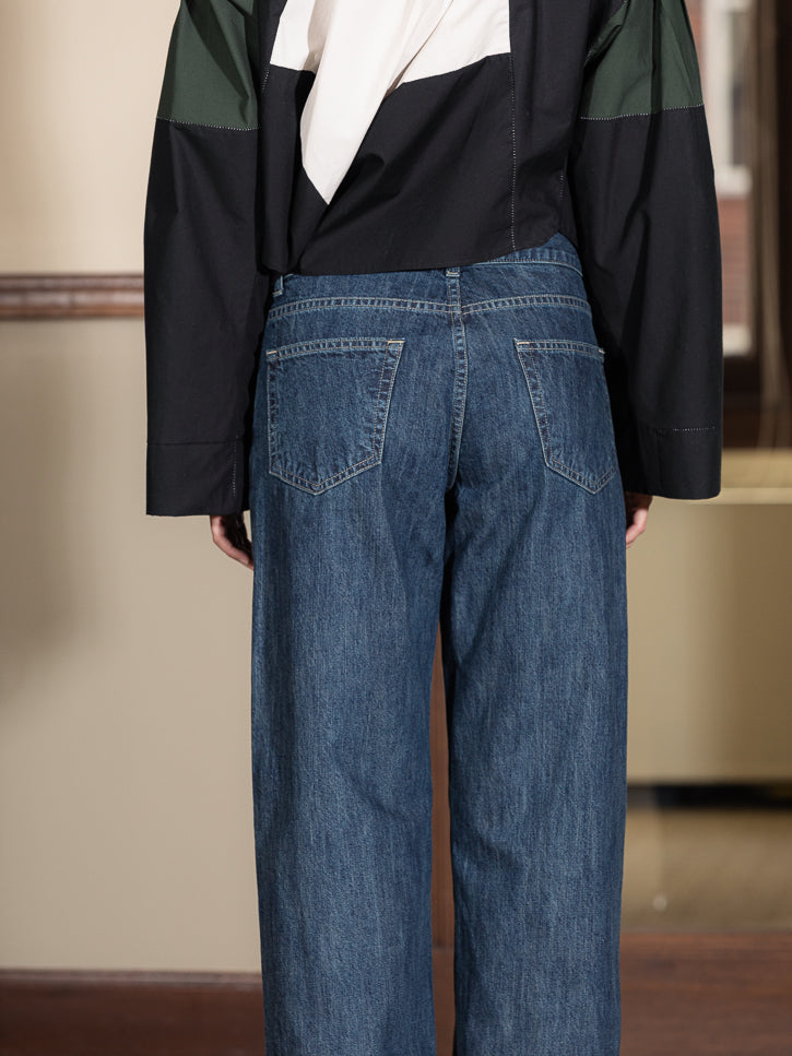 The most contemporary cut on a classic straight legged, low-rise jean. And we mean ideal fit in the seat and hip. Mid-blue wash, 11 oz denim. Unisex.