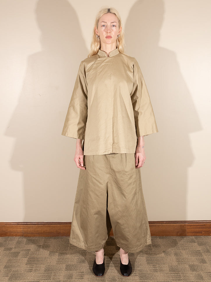 This jacket features a banded neckline, a nice departure from the traditional blazer, though this certainly fits that profile in terms of utility within a wardrobe, wear open or closed, layered or alone. There's a flexibility to the fabric that makes it all-season. Snap closures.