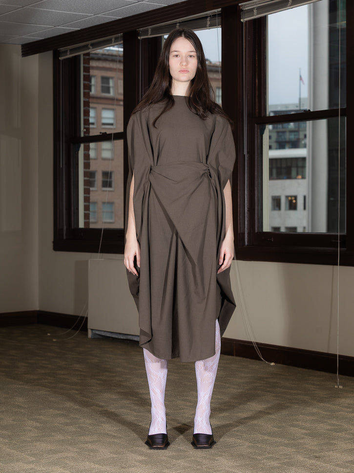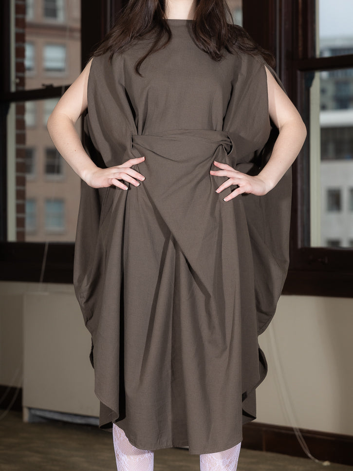 This dress isn't a circle, it's a sphere, giving it a definitive, sculptural quality while losing nothing from the ease of wearing. You control the dimensionality with the internal wrap, which ties around the waist inside the garment. A very special piece. Pockets, too.