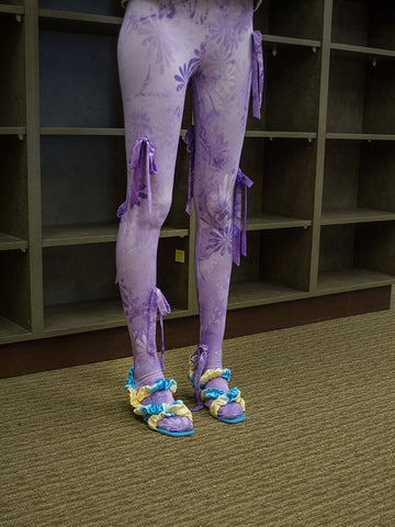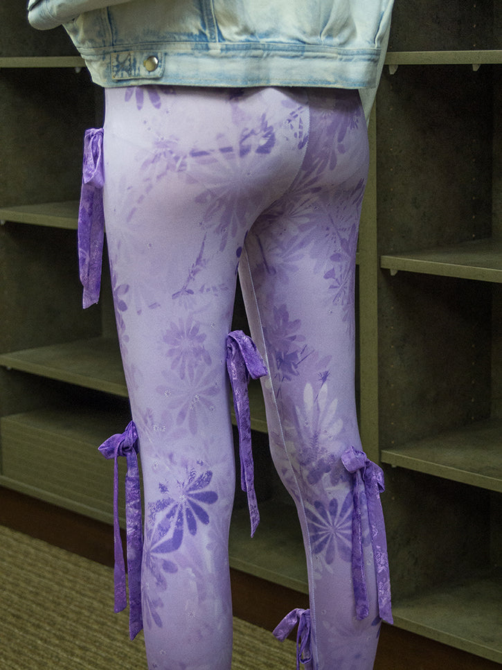 Stretch tights, elastic waist, with custom butterfly print and bows.Cassandra is a US 2/4 and wears the Small.
