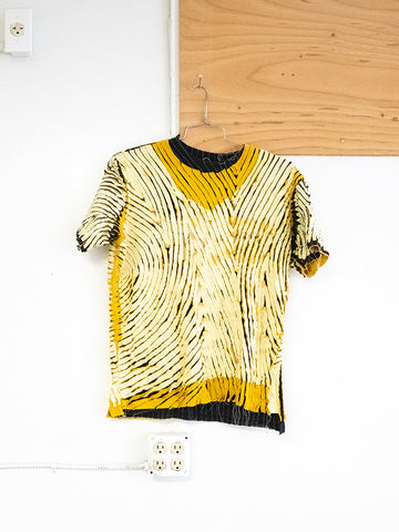 Price: $105One of a kind top made from three different shirts, hence the 3T. The amount of labor in these pieces is astounding. JRAT is zero waste, 100% up cycled and recycled and sustainable. All handmade. Unisex.