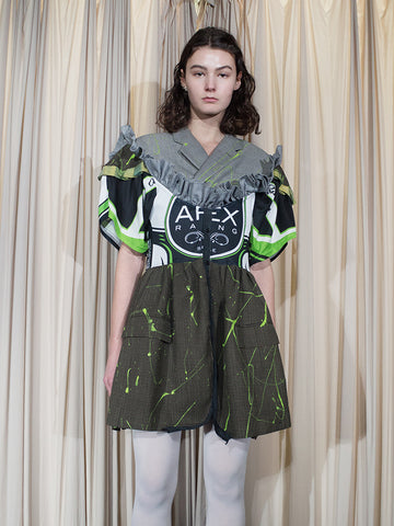 Price: $350From the Homesick, Again collection. All deadstock fabrics, seven different reclaimed garments, these are a mash up of mediums. From baby rib jersey to cotton poplin to nylon mesh to brocade woven. JRAT is zero waste, 100% upcycled and recycled and sustainable. All handmade. One of a kind.