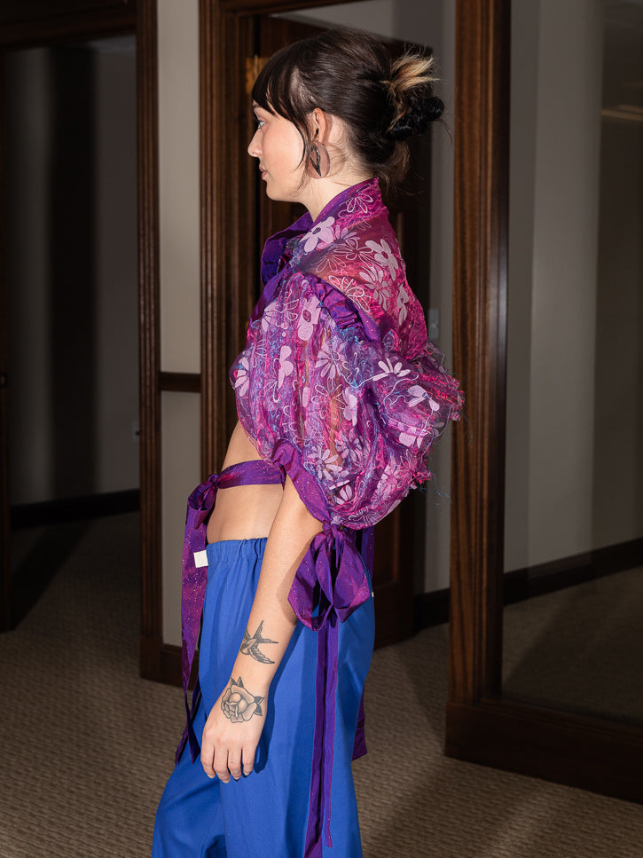 One of a kind top/wrap made from scraps, remnants, ribbons, everything. Long ribbon straps allow for a few different ways of wrapping. Lovely as a light cover, or as a top. JRAT is zero waste, 100% up cycled and recycled and sustainable. All handmade.