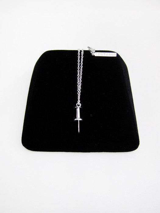 In solid 925 sterling, plated in white rhodium, which gives it a really shiny surface. A sparkling, humorous object. 22" full length; 11" long closed.