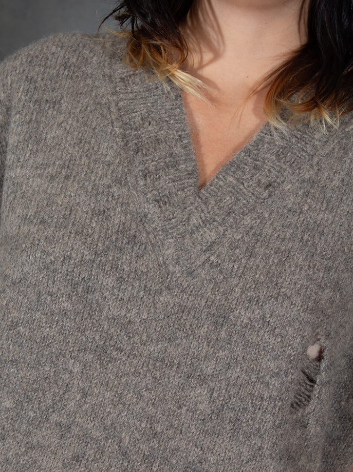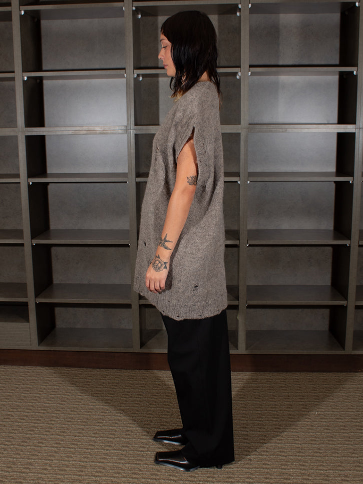 Hand knit in a big, bouncy loop that's kind of like a mega boucle. Beautiful alone or over sleeves, and very versatile.