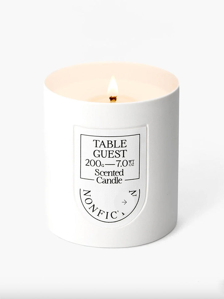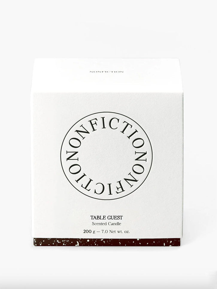 Nonfiction's candles are soy-blended wax candle comes in a potter-crafted bekja vessel (Korean white porcelain).Scent notes: Black Currant, Freesia, Ivy Leaf, Patchouli, Fresh Greens