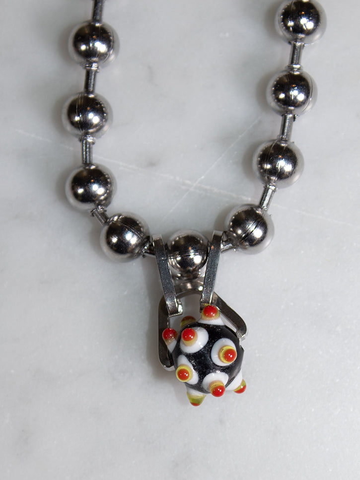 8mm ball chain with glass bead charm. 17" chain.