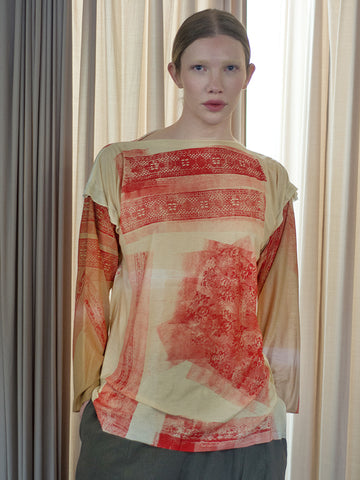 Price: $452Supremely light top in poly chiffon. Vertical hand pleated, digital print with original pattern. Designed as one size, fitting well on all types of figures in its own way.