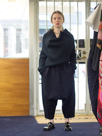 Price: $282This top is a 3-season light stretch wool top, designed to be worn in multiple ways—as a cowl, boat neck, or high neckline. Adjust it for drape, for a stronger shoulder or not. Straight from the archives.