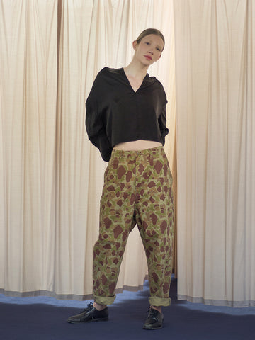 Price: $536Ms. Heuer's work is inherently flexible, with plenty of stretch and the right fabrics designed to drape well on all types of figures. These trousers are hand pleated and digitally printed with original patterns. Straight legged, elastic waist.