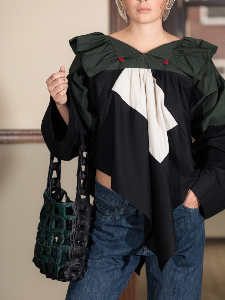 These link bags are meticulously, labor-intensively made by hand. Each link connects to the other in such a way to create one tapestry ending in one primary connection. The brand's ethos is to work with materials and hides not traditionally considered “perfect;” others may consider them “perfectly imperfect.”