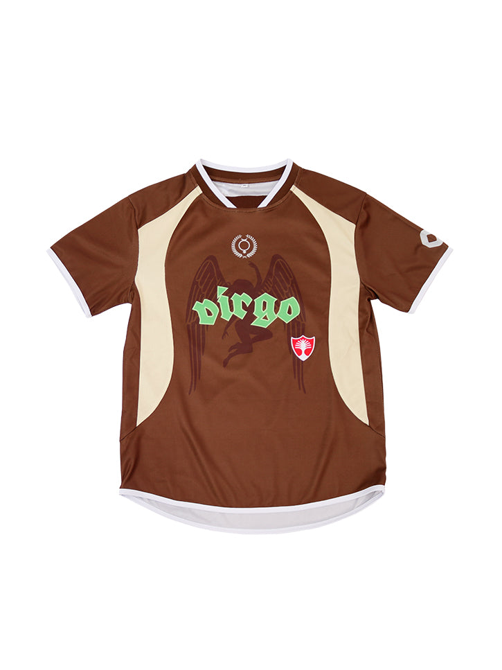 Football (ie. soccer)-style jersey, oversized, but with the zodiac signs and corresponding constellations you all love. Simple, graphic, and effective. Very good with something formal and tailored, like trousers or a trench coat.