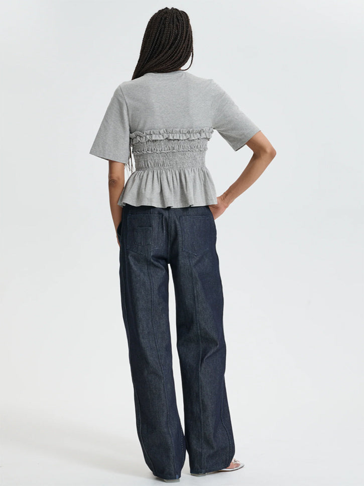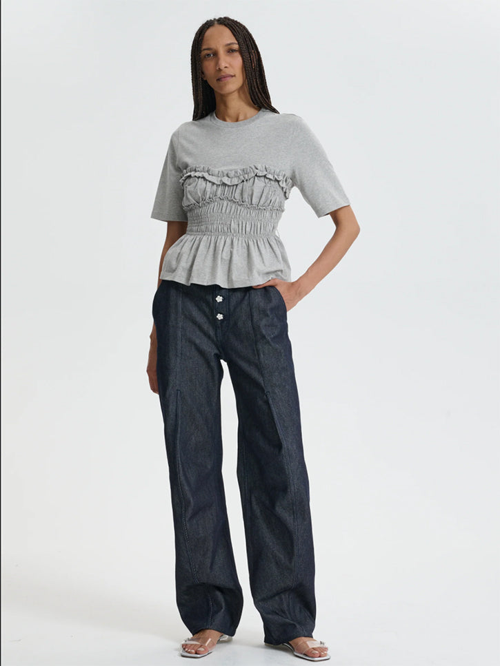 Cecilie Bahnsen's signature ruching at the bodice, a couture technique translated into a soft jersey. Peplums can be flattering, don't forget that.