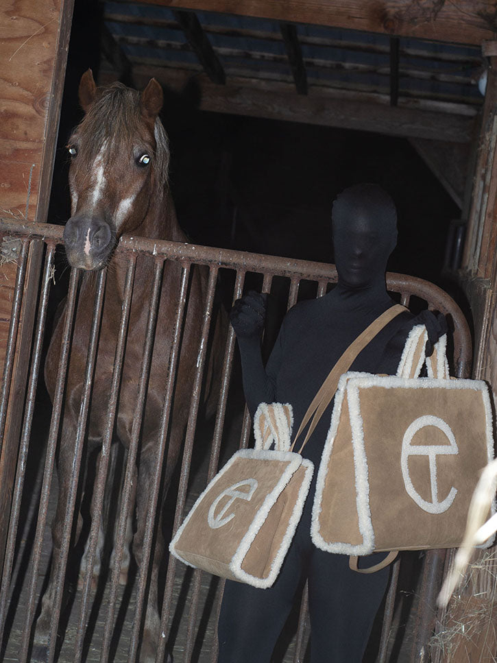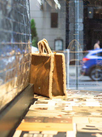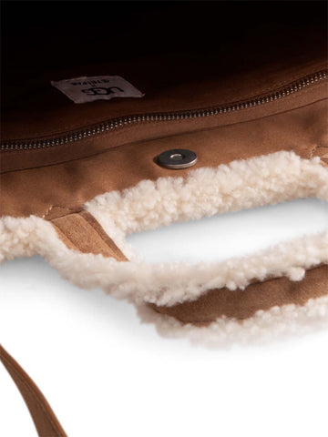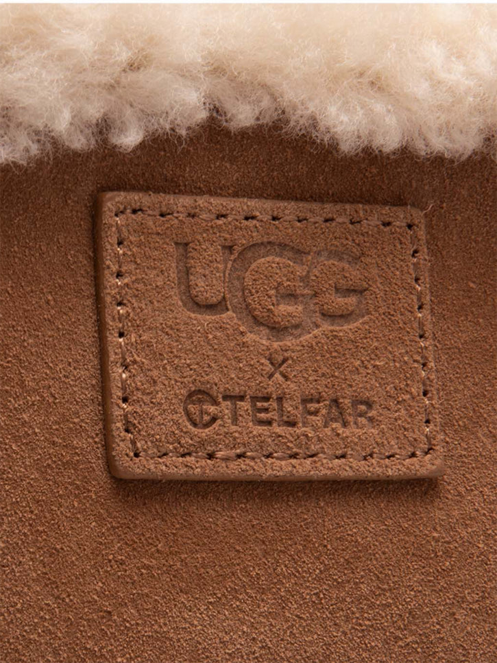 Telfar’s iconic unisex shopping bag is an everyday bag for everyone. Adapting the design with a plush Telfar logo, exposed shearling trim, two cross-body straps, and a magnetic snap closure, it’s made from UGG's signature sheepskin and suede with an interior zip pocket and 100% cotton twill lining for a soft feel inside and out.