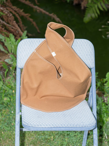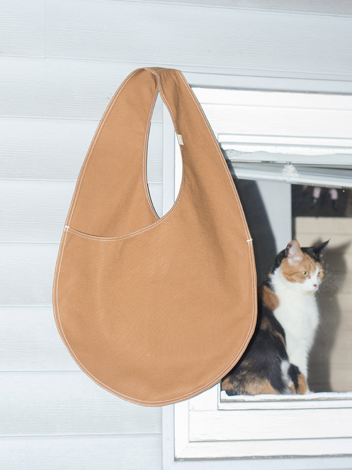 The geometry of this bag is what makes it interesting; the usefulness and adorability are what make it essential. Tote bags with real trim and this attention to detail in construction are almost impossible to find. Elevating a utilitarian material with its simple, poetic design. 20" h x 13" w; 10" handle drop.