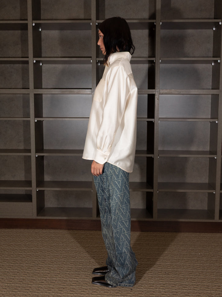 Perfect ivory. This fabric is quite epic, soft and light but still substantial. Nice option to spice up an otherwise low key outfit.