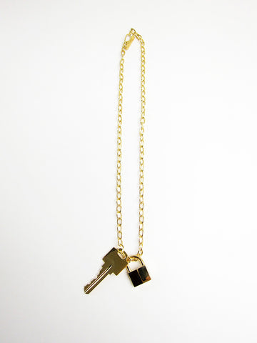 Price: $557,80In solid 925 sterling, surfaced in 14k gold vermeil. With strong links, it's a truly unisex piece. Life sized key and mini-lock. 27" full length; 18.5" long closed.