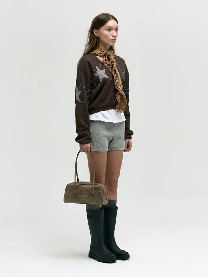 These were called baguette bags because, well, they're reminiscent of a baguette. Now, we're not suggesting you carry a loaf of bread in this, but it could be pretty chic. Internal zip pocket and one slip pocket. 4.75" h x 22.5" w x 2.75" d; 9.5" handle drop.