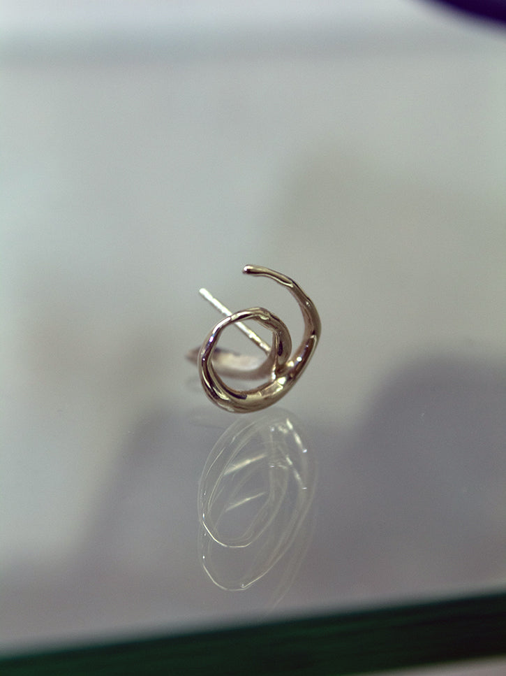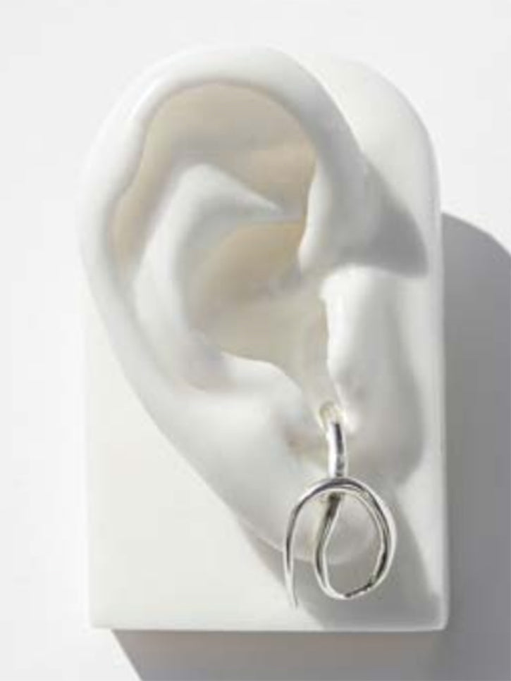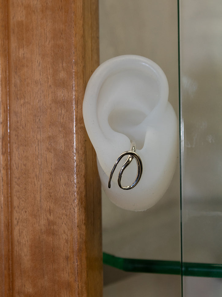 Try a different kind of stud. Still delicate, but a serpentine shape that encircles the lobe. Approximately 1" long. Sold as single.