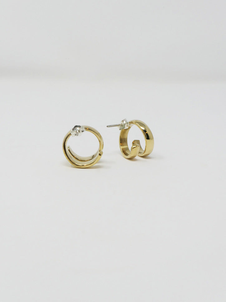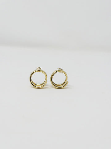 NB: These earrings are sold as singles.Tumbaga (copper/gold blend) spirals that hang just below the lobes, in an illusion style. Posts and backs are sterling silver.