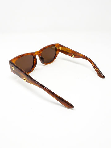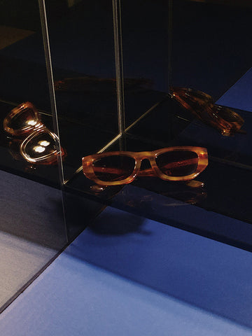 This special series from Vada is from their Tokio, Texas eyewear collection, celebrating juxtapositions of geometry, jazz, feminine and masculine. The Kauboi group is a chunky square frame destined to be designated a Vada future classic. Inspired by nudie suits from country music counterculture. The series features all 18k gold-tone details: 5-barrel rivet hinges, double wing-tip temples, and engraving. The arms include 18k gold rivets designed to hold Vada's gold chain retainers, making these eyewear and jewelry at once. Handmade in Japan in micro-batches with organic cellulose acetate. Unisex.