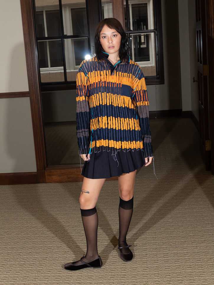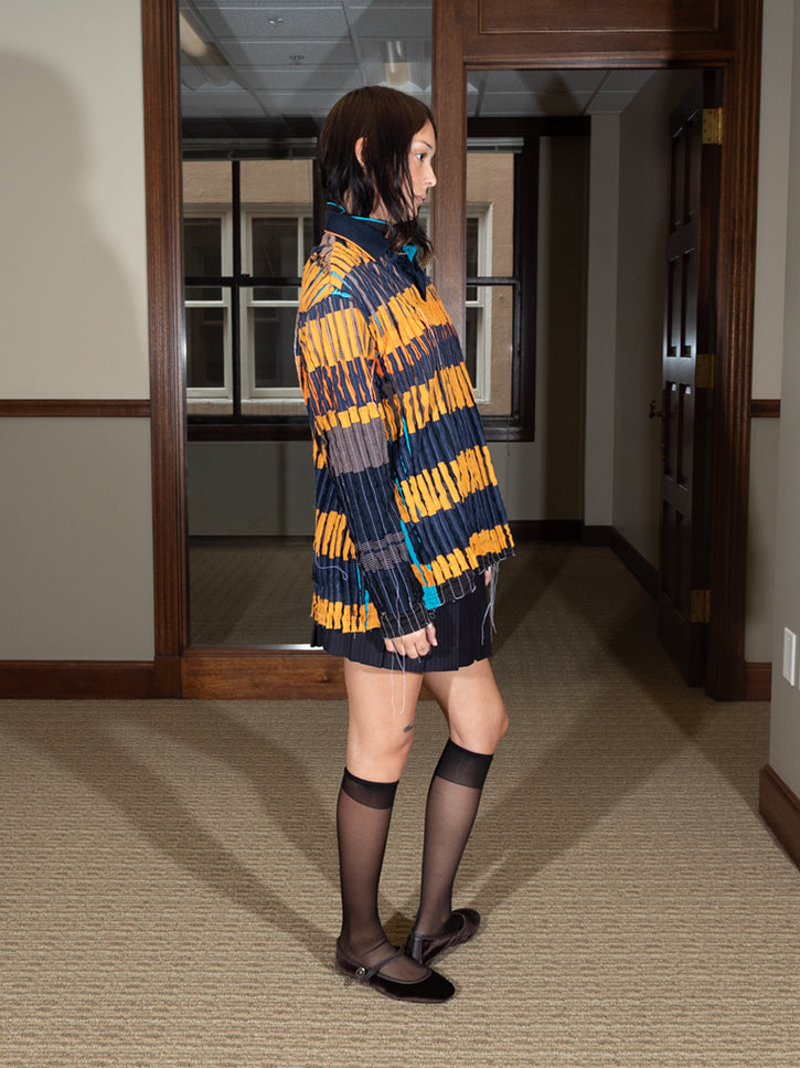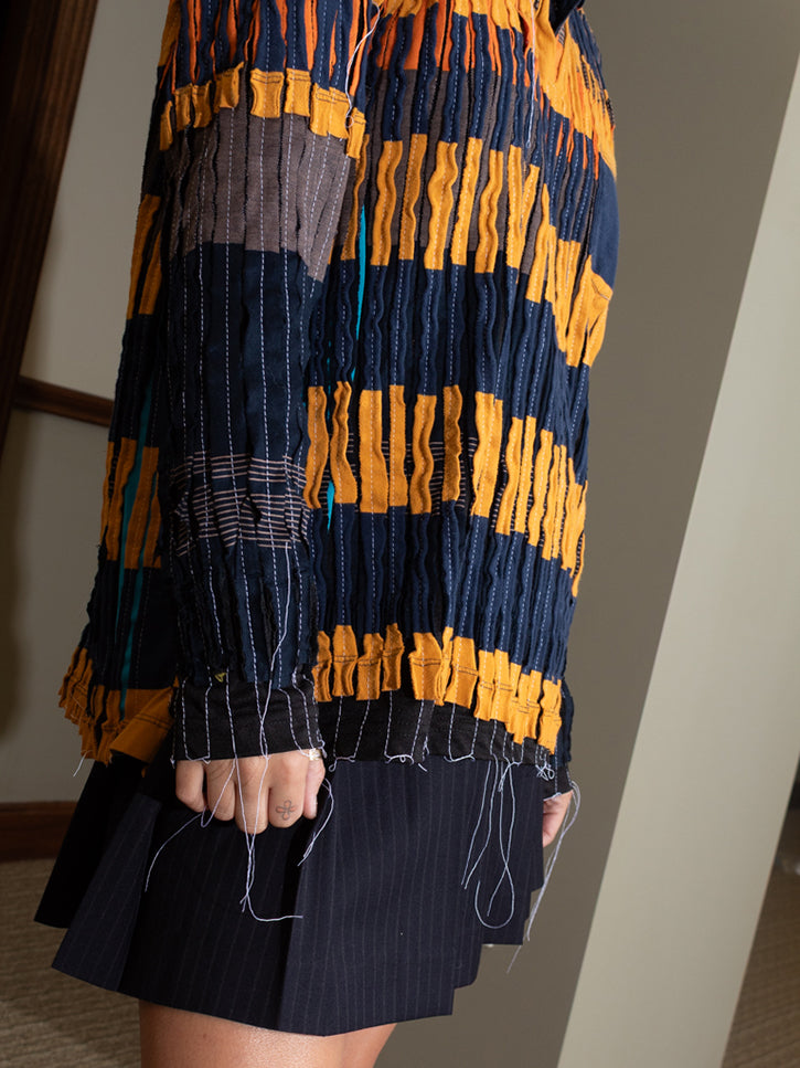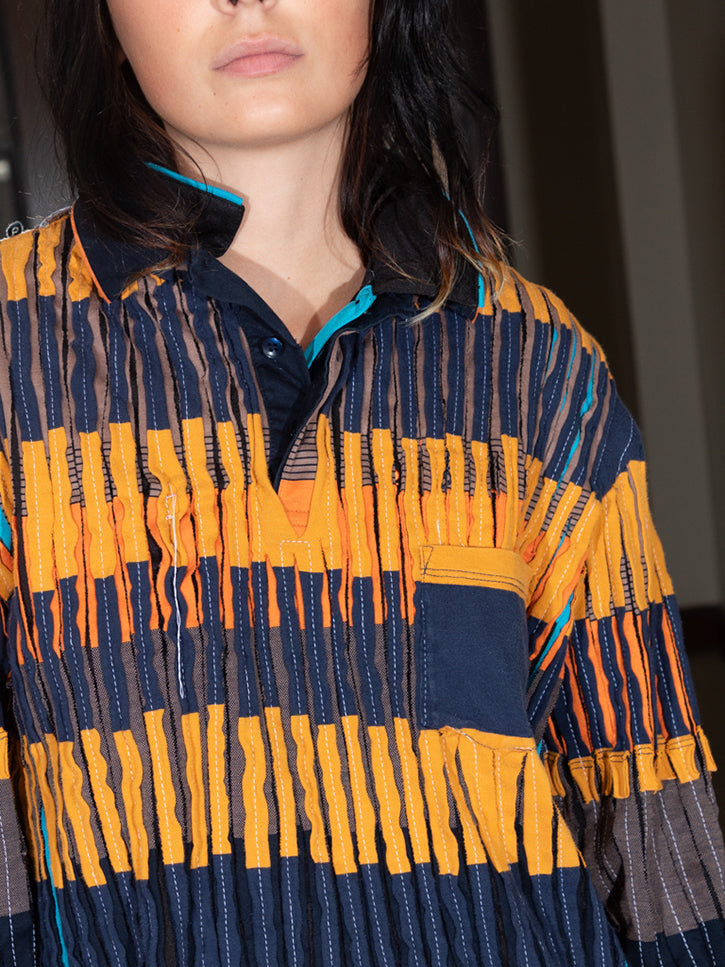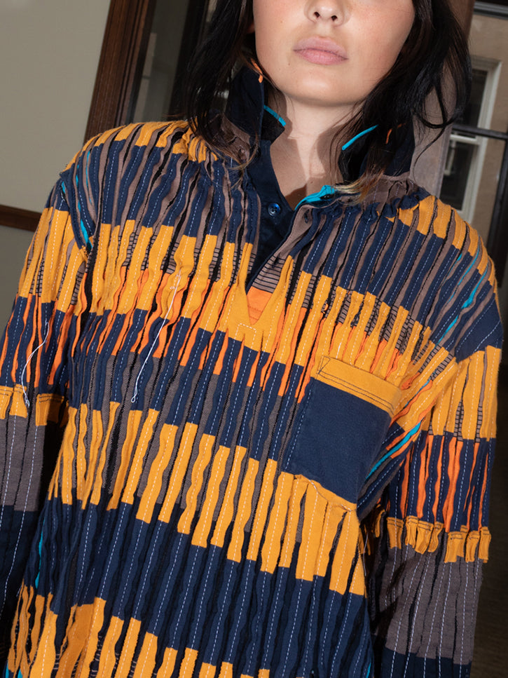One of a kind top made from three different shirts, hence the 3T. The amount of labor in these pieces is astounding. JRAT is zero waste, 100% up cycled and recycled and sustainable. All handmade. Unisex.