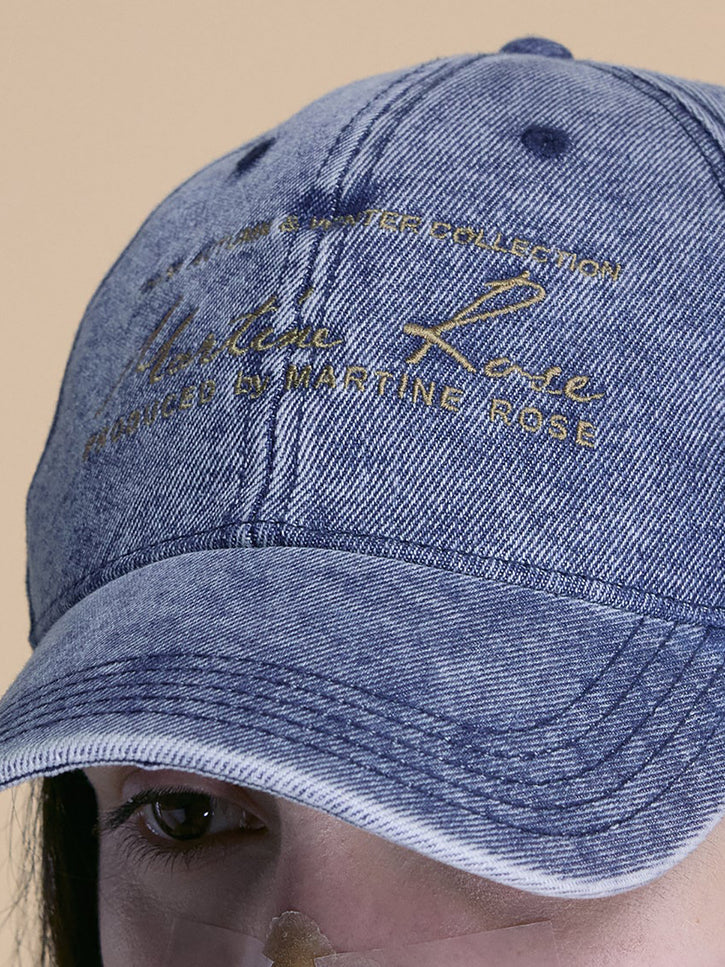 The brand's signature cap in stonewashed cotton denim with the classic logo embroidery. Adjustable sizing with velcro closure. Unisex.