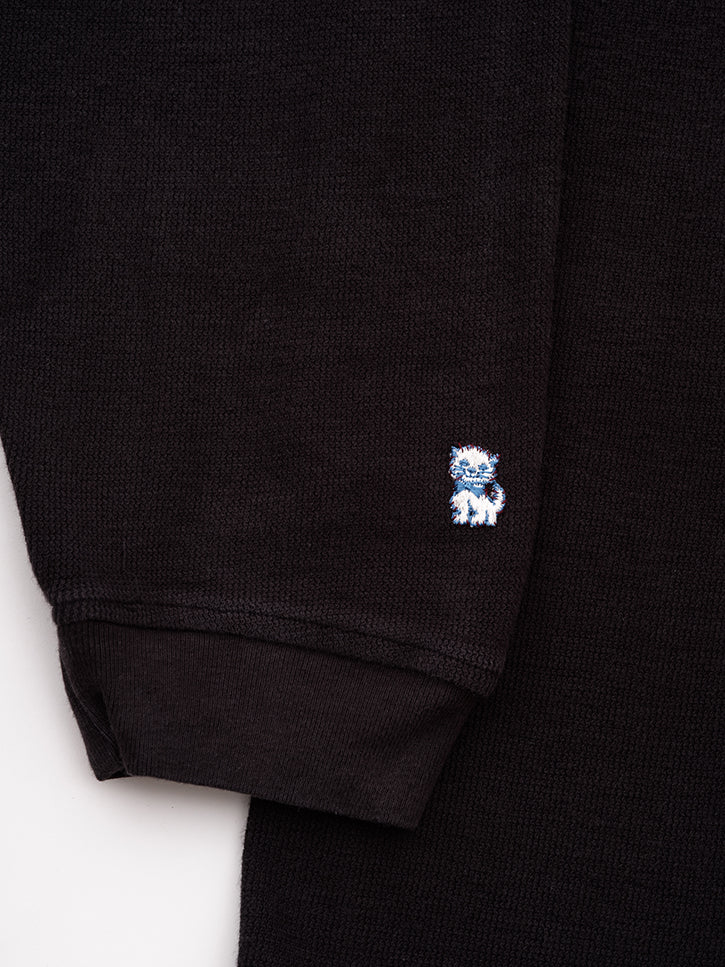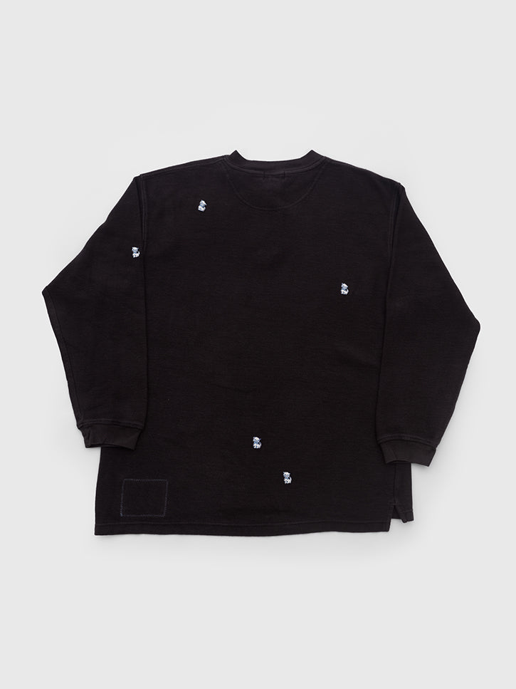 Vintage long sleeve thermal henley features 13 vintage patches hand sewn. One of a kind. Unisex.