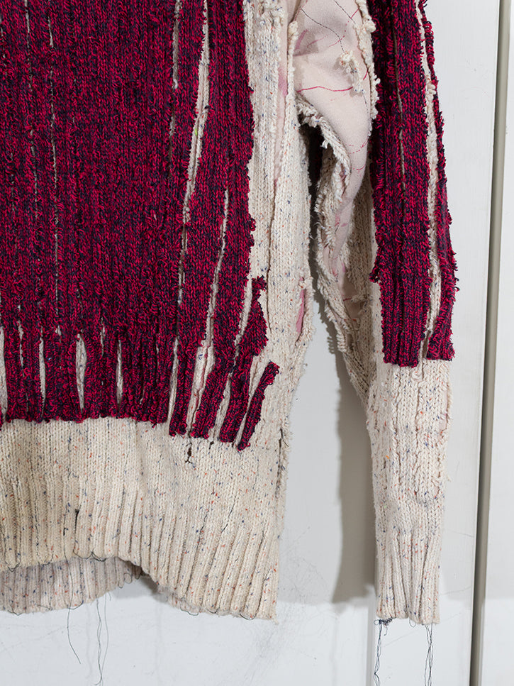 One of a kind piece made from three different sweaters. The amount of labor in these pieces is astounding. JRAT is zero waste, 100% up cycled and recycled and sustainable. All handmade. Unisex.