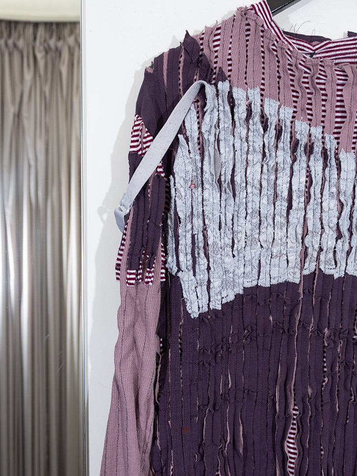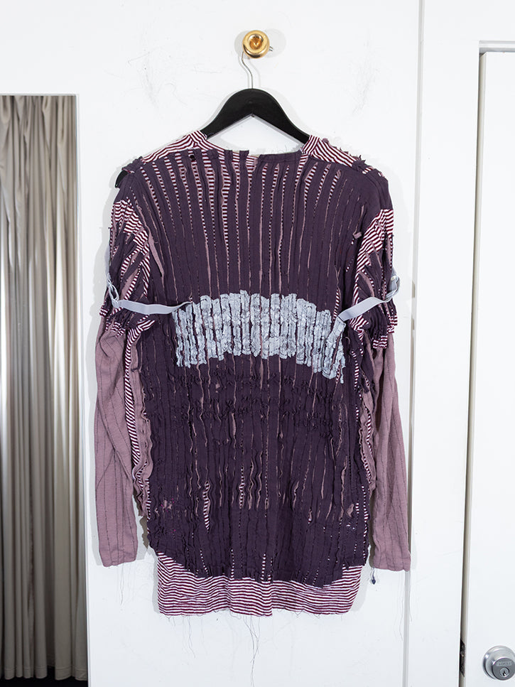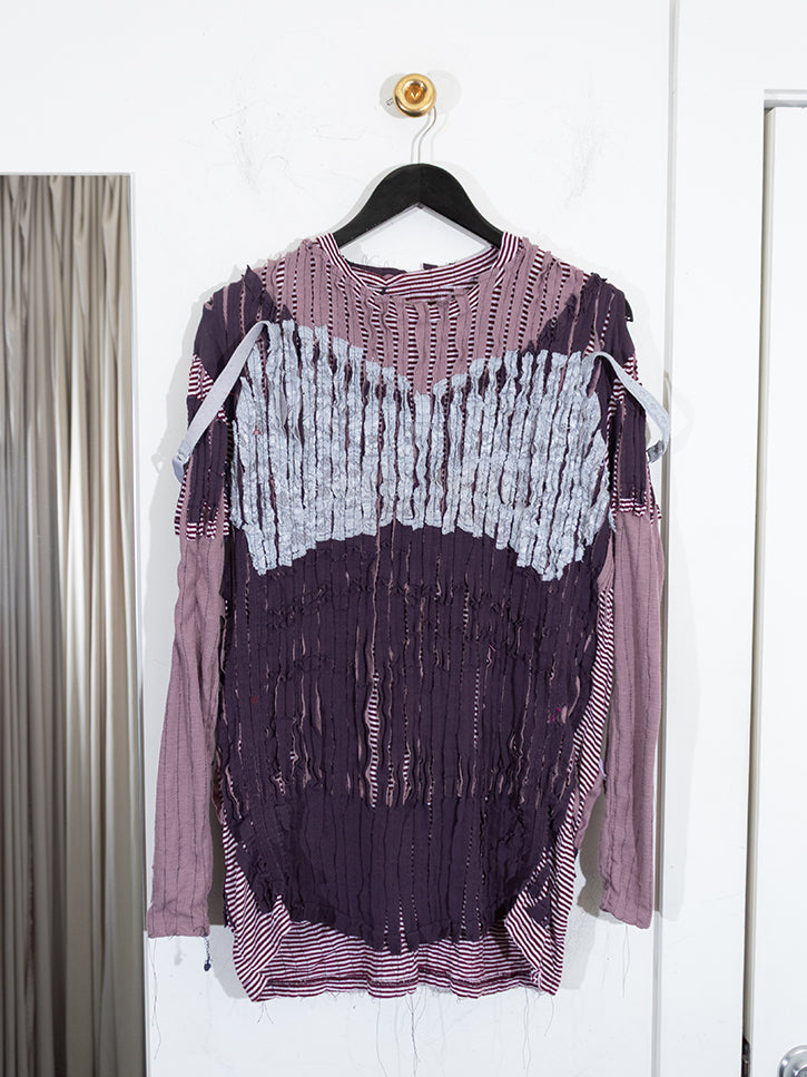 One of a kind top made from four different shirts, hence the 4T. The amount of labor in these pieces is astounding. JRAT is zero waste, 100% up cycled and recycled and sustainable. All handmade. Unisex.