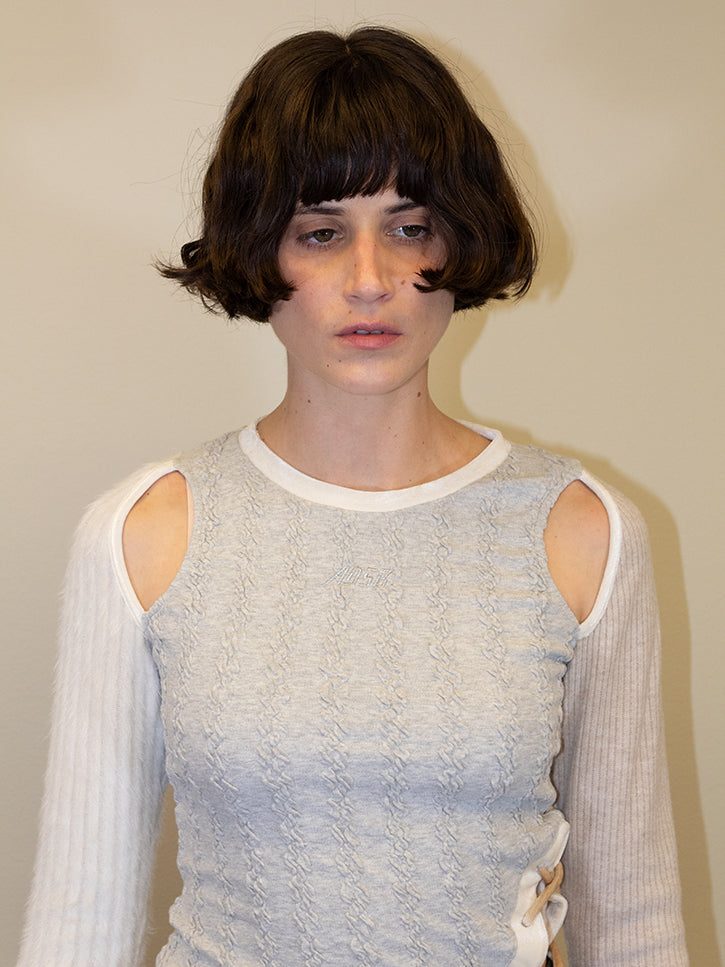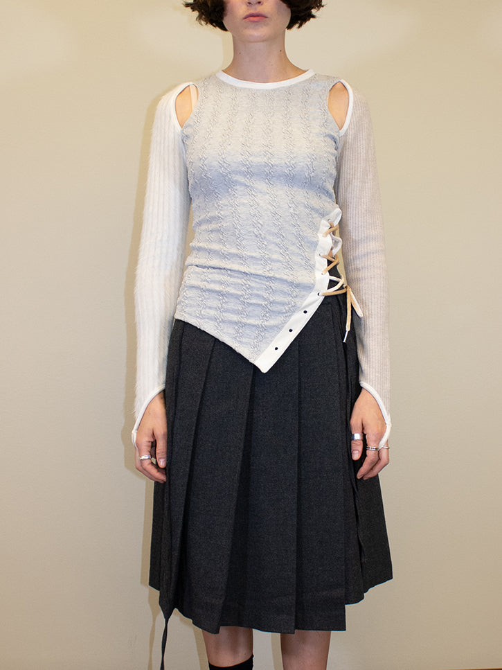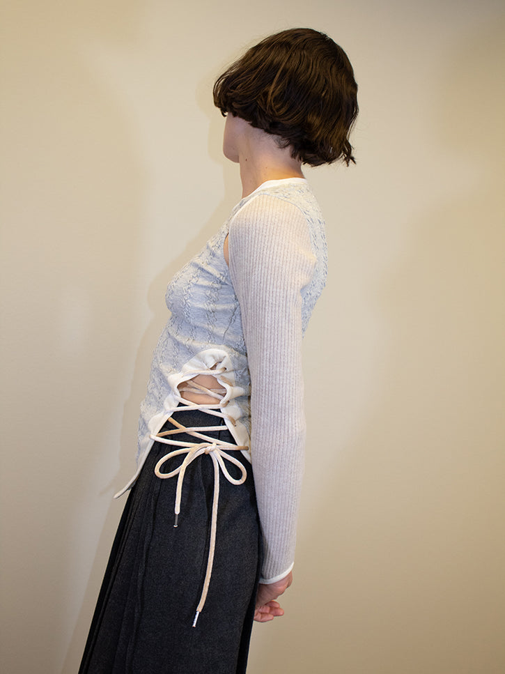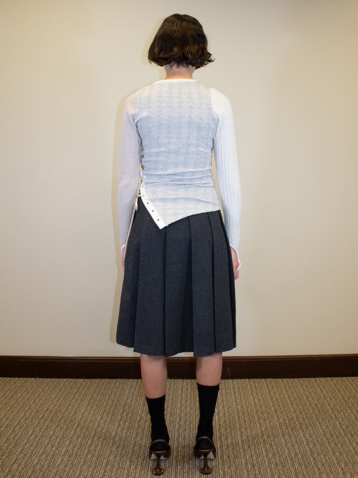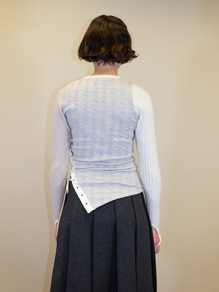A very cool zip up vest, with blouson snap front pockets, zip front pockets, and adjustable harness detail in back. Unisex.