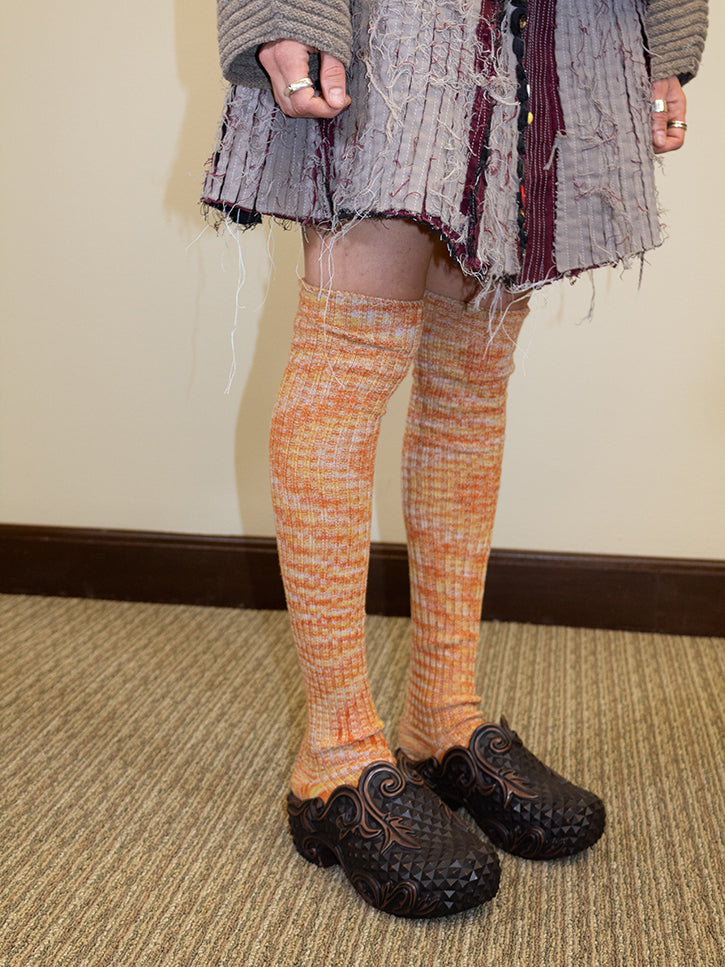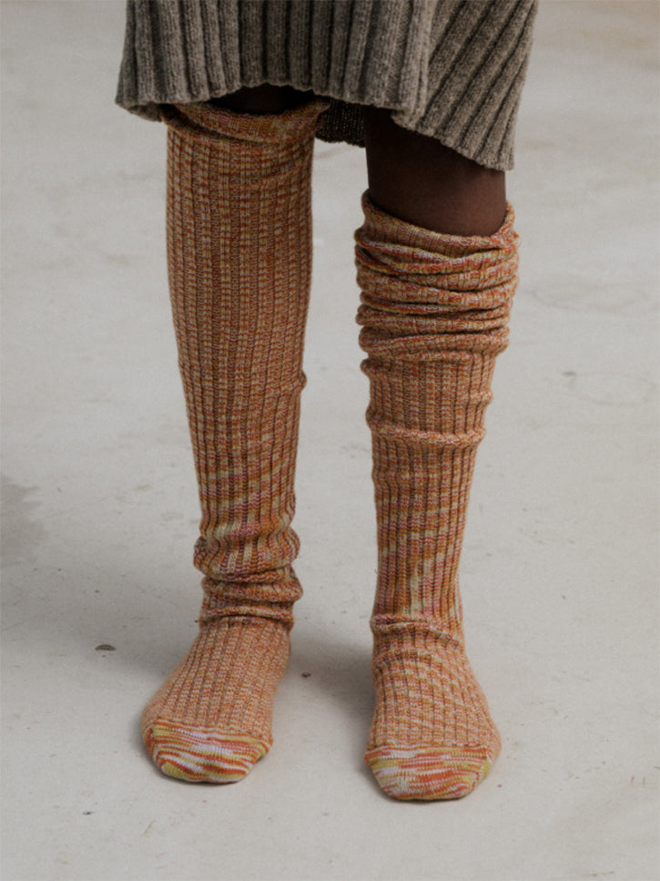 Baserange Twisted Overknee Socks, Orange Multicolored | Stand Up Comedy