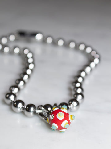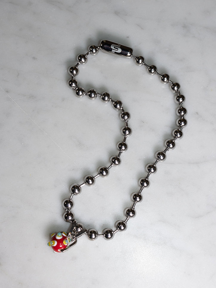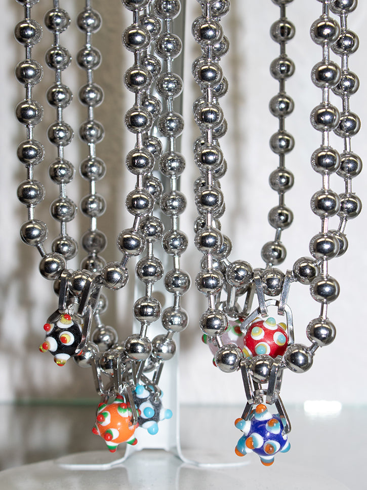 8mm ball chain with glass bead charm. 17" chain.