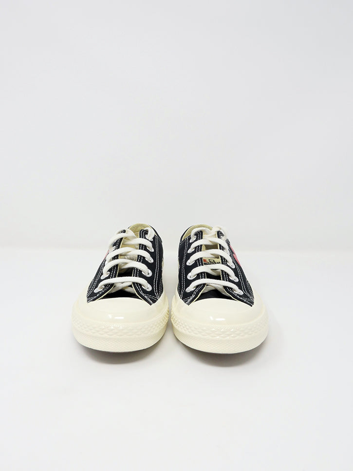 The low-top version of this cute, well-like staple. Comme des Garçons meets Chuck Taylor. The soles are a little thicker than the classics. Cute cute cute. Cute cute. Cute. Unisex.