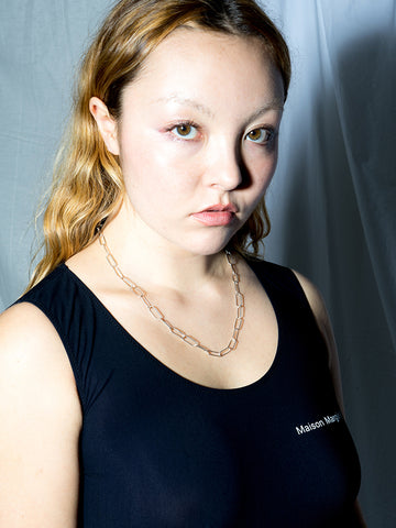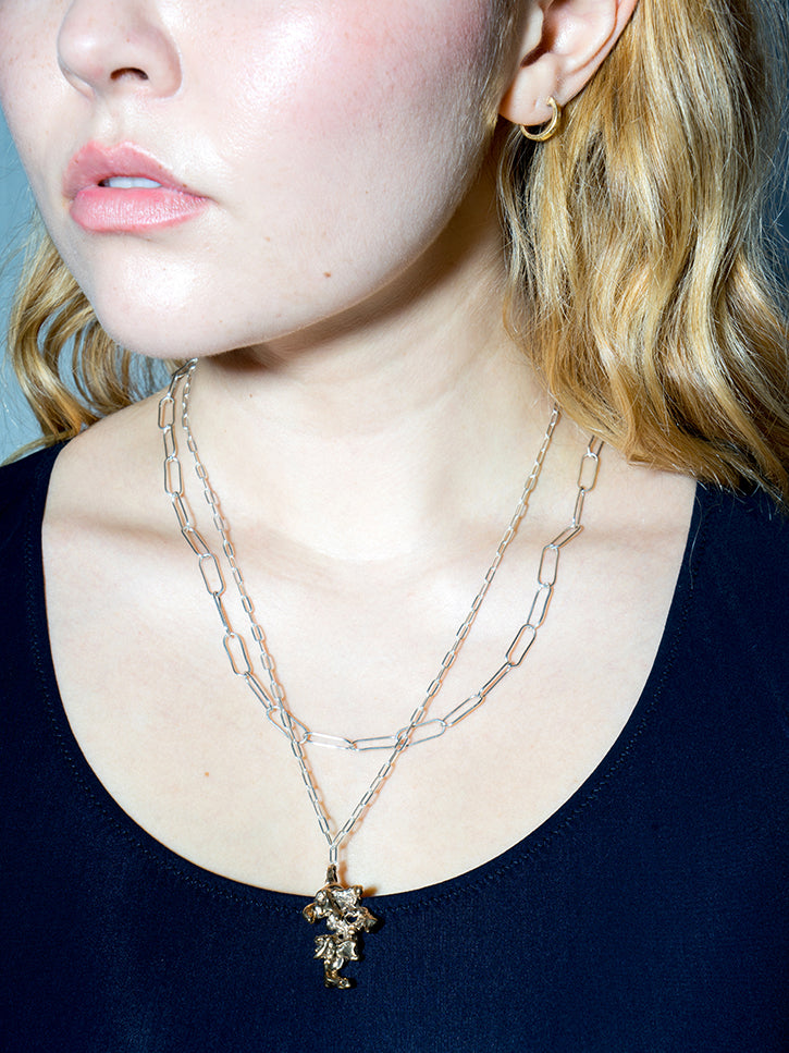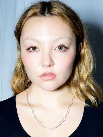 An ultra light chain. The links are large and flat, bringing to mind the classic paperclip. Formed in sterling silver. Unisex.