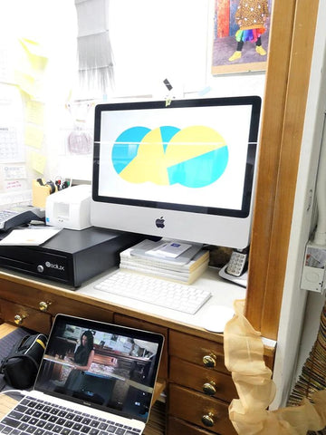 Based on a wall clock designed by Karel for his exhibition at P! (New York), the screensaver software uses three yellow and blue spinning disks to display the hours, minutes, and seconds of the current time. It does very little, other than spin contentedly. But, on the way, the passing of time produces a collection of graphic arrangements as so many discrete moments.