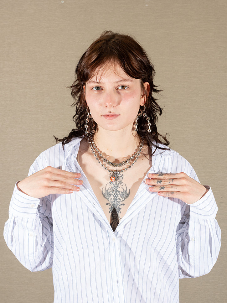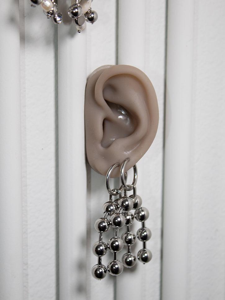 Parabola earrings of 10mm ball chain, huggie closures. Sold as pairs.