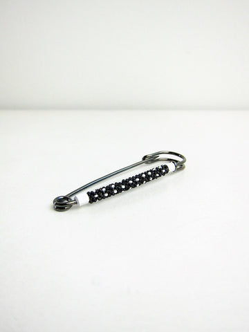 Tiny antique glass seed beads date from the 1800s and are woven with a peyote stitch. Black-plated steel pin. Unisex. Approximately 2.75" long.