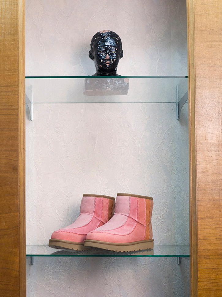 The classic UGG gets a remake by artist Tschabalala Self, inspired by her sculpture Loveseat prototype (2020). Butt seams are added to this one, a repeater worth repeating (if you already own a pair of the classics).